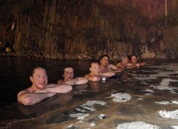 Después de almorzar/cenar, comida mexicana magnifica, algunos visitamos los baños termales.  Esperábamos una experiencia como la de Santa Teresa, pero, no, estos baños fueron terribles.  El agua fue marrón y los baños fueron pequeños y llenos.  Creo que Stacy, Jane, Matthew, Mum y yo quedamos en los baños hace 3 minutos máximos. Aún, fue una experiencia.