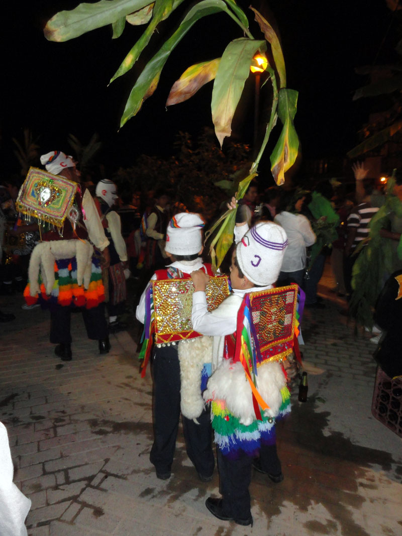 Por fin llegamos a la estación de tren  de Aguas Calientes y solamente necesitamos caminar 20 minutos más a nuestro hotel. En el hotel, duché por la primera vez en 4 días (4 días de excursionando) y afortunadamente fue una ducha muy buena.  El grupo tuvimos una fiesta en la habitación de Stacy, Chris y Jane con vino, helados y chips. Más tarde caminábamos por el centro y vimos una fiesta con muchas personas que llevaban ropas interesantes y divertidas.
