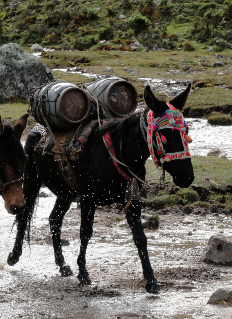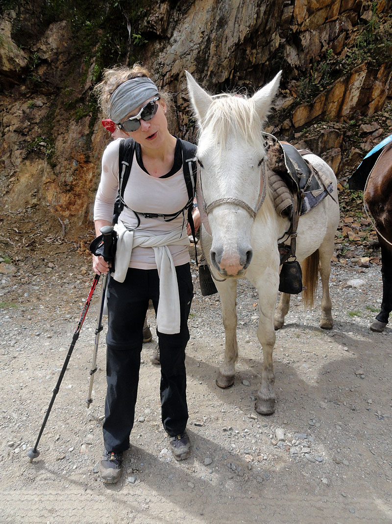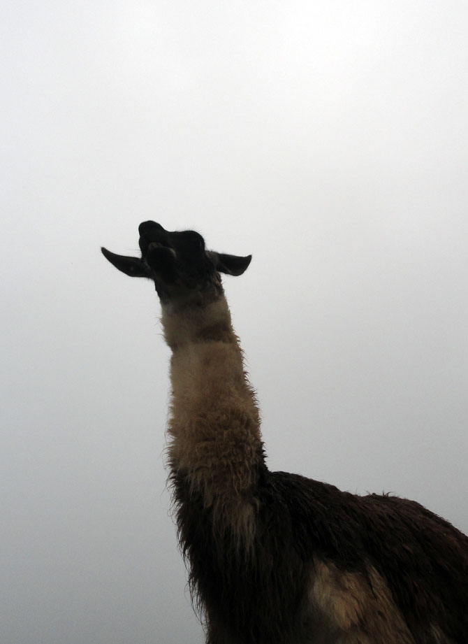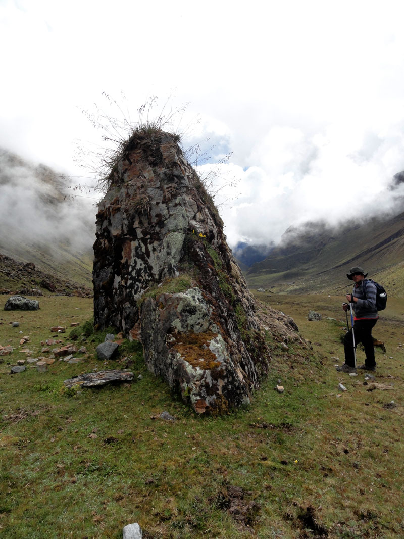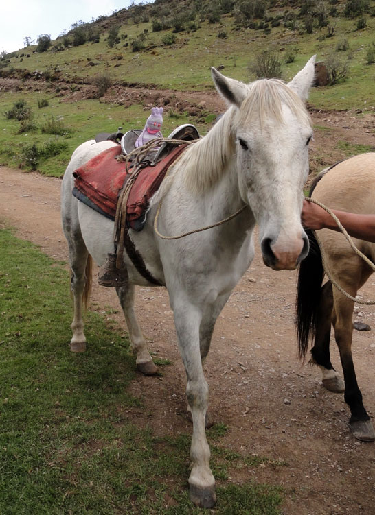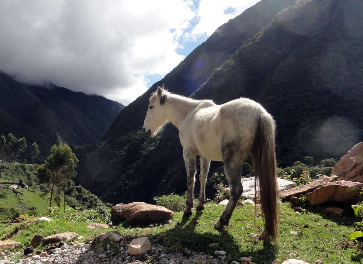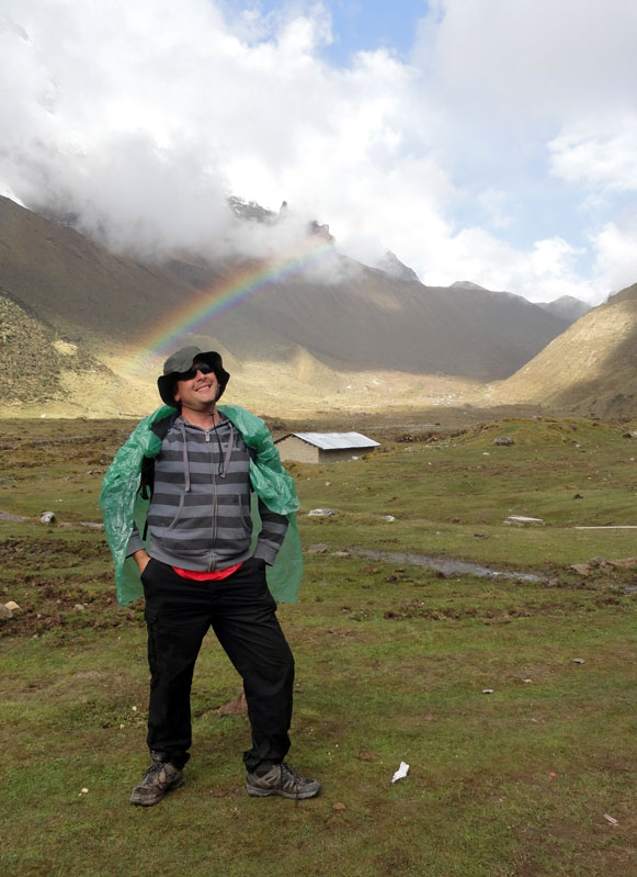Desafortunadamente para mí, la parte de que estoy bien es la subida, y a causa del tiempo hemos perdidos en la mañana con un empiezo lento, tuvimos que montar los caballos para subir las pendientes. Los caballos fueron muy divertidos y podía sacar muchas fotos de las otras personas, de las montañas y las vistas muy peruanas y perfectas.  El punto más alto de nuestra caminata fue a 4600m (15091 pies) y se llama Salkantay Umantay. En este punto, Juan nos dijo sobre las tradiciones de los Incas y las locales, y hicimos un ofreciendo para Pachamama.  Salkantay es el segundo punto más alto en la región de Cusco y tiene una altura de 6264m (20551 pies).  Al punto más alta para nosotros, Jane se sintió terrible y incluso yo tuve dolor de cabeza.