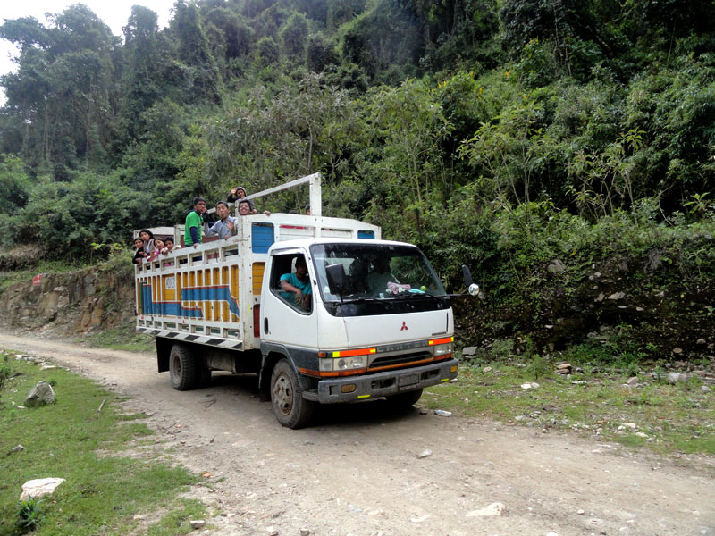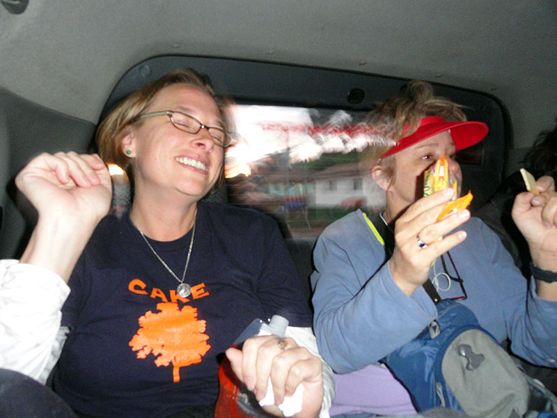 Luego la camioneta nos tomó hasta el lugar de nuestro campamento por la noche. Este paseo pareció más peligroso que todo el resto del viaje – las calles fueron angostos y a un lado hubo una barranca muy abrupta. El chofer tocó la música muy fuerte y manejó muy rápido, a veces necesitaba poner al revés el vehículo y todo el tiempo pareció muy peligroso.  Yo sabía que a Stacy no le gustó el paseo en absoluto y yo tenía que estar de acuerdo… A veces me preocupé sobre la vida.  Más tarde bromeamos sobre la loca camioneta y lo llamamos “The party bus”.