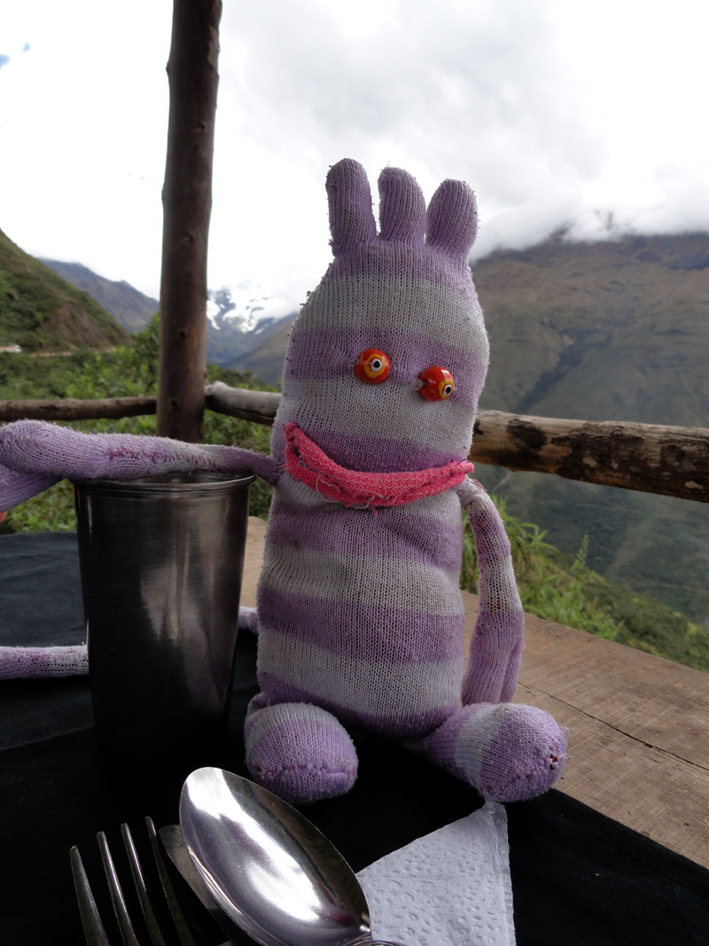 Hube hablado con Juan mas temprano sobre las opciones respecto a Jane y si ella no mejoró en la mañana, decidimos sería mejor para devuélvela a Cusco y luego a un lugar con altura mas baja para recobrar.  En la mañana todavía  ella se sintió terrible y Juan y su equipo hicieron planes para tomarla a Cusco. Fue un tiempo muy difícil porque ella no quería salir y se sintió culpable para ser un problema.  Por fin, mientras Juan y yo nos hablábamos, Jane podía vomitar. A causa de eso, se sintió mucho mejor y rápidamente cambiamos nuestros planes otra vez.