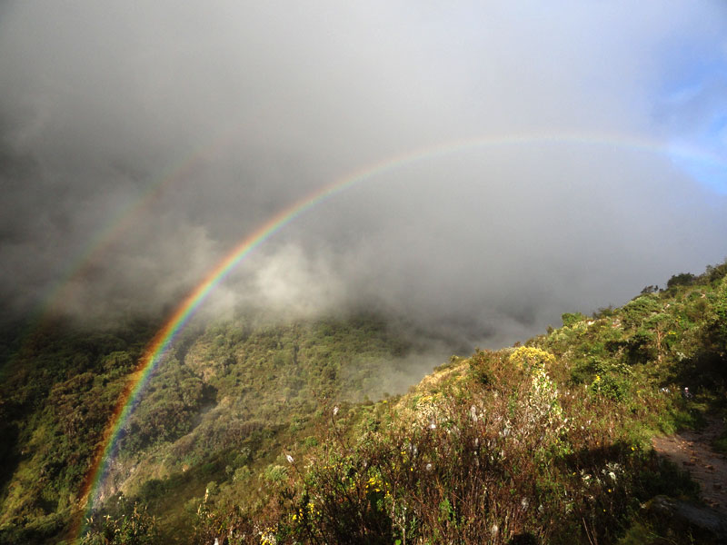 El tercer día, el jueves, continuamos hasta santa Teresa. Después de una hora llegamos a Challway, el lugar donde estábamos supongo dormir la noche anterior. Acá pudimos comprar agua en vez de agua hervido del campamento – ¡Qué lujo!  Continuamos por la selva de las nubes y lluvia, cruzando un río así como observamos cascadas y muchas orquídeas y picaflores. Caminamos hasta una camioneta que nos tomó al sitio para almorzar. Hubo muchas excursionistas allá que fue poco raro. Pero compartimos unas cervezas y jugamos con algunos cachorros y gatitas.