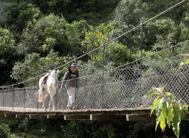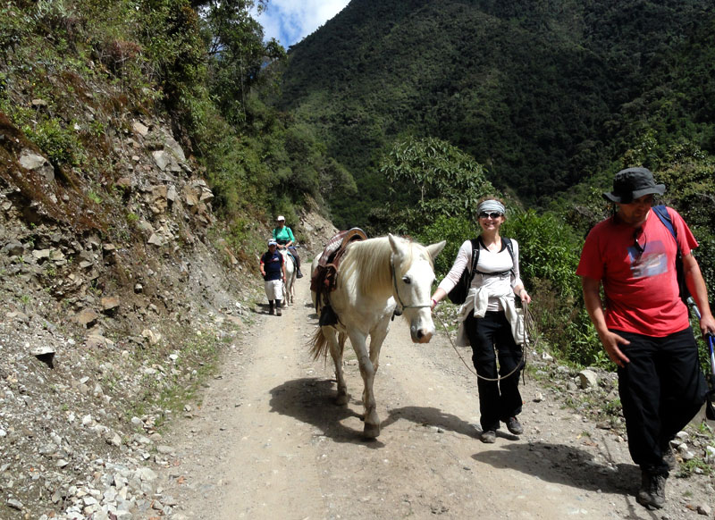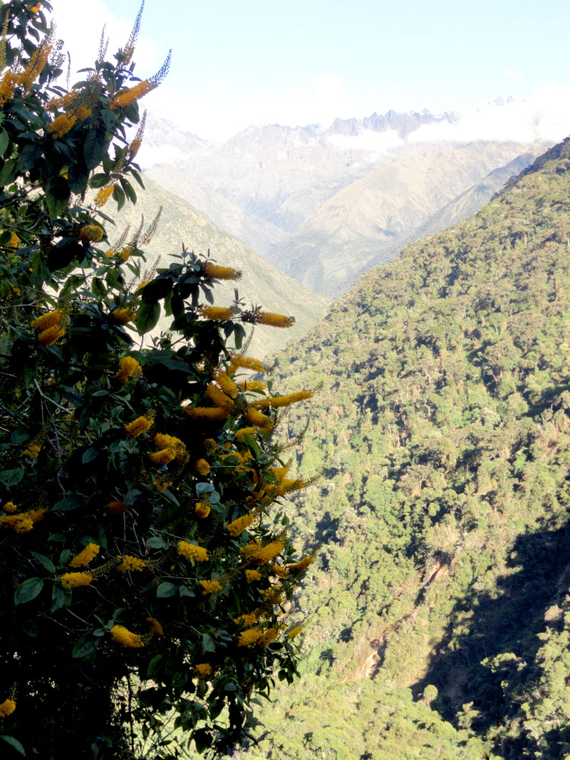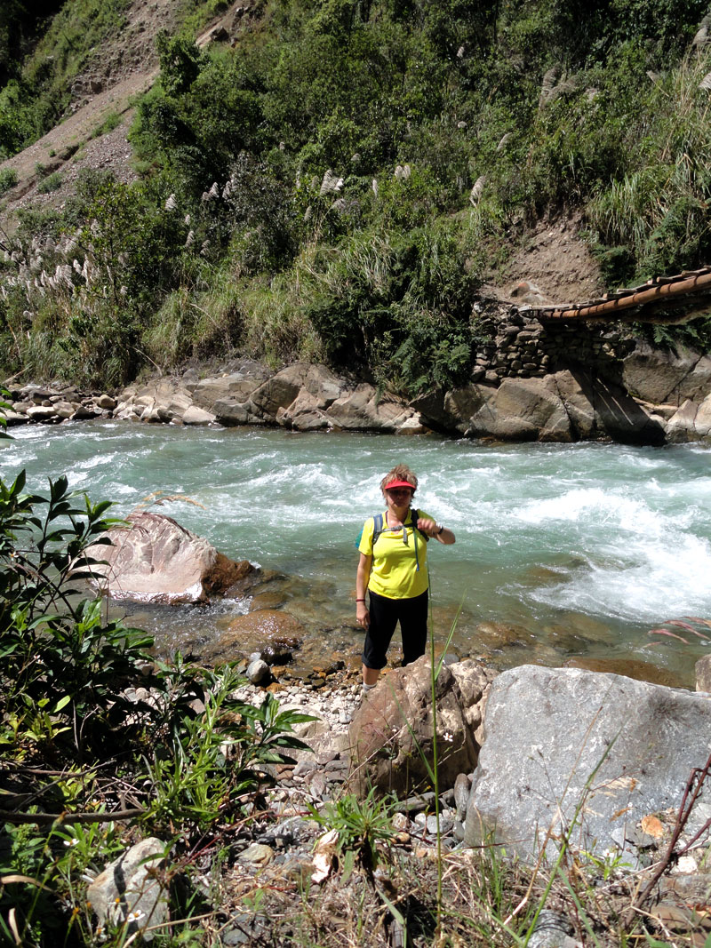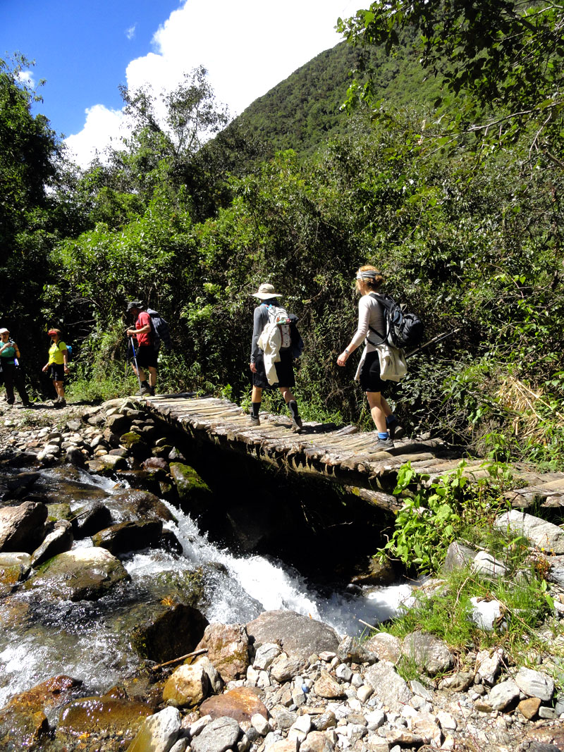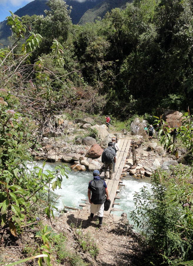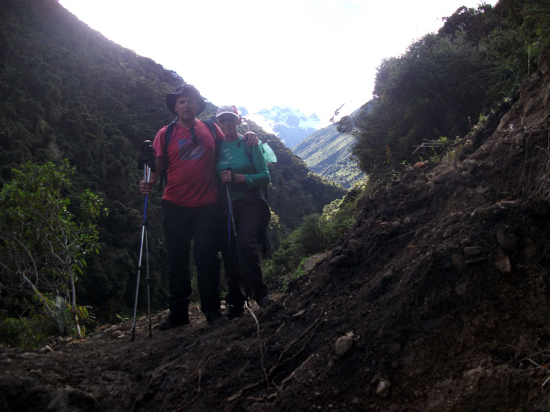Por supuesto esa caminata no es la que he sido planeando hace muchos meses. La caminata original fue de Cachora a Choquequirao y de vuelta. Pero después de las lluvias, el puente que cruza el río Apurimac fue destruido y no hubo una manera sin peligro para hacer la caminata.  Juan y Oscar intentaron encontrar muchas alternativas para hacer la caminata original, pero por fin fue evidente que con nuestro horario, nada no fue posible.  En vez, Juan y su familia y los demás nos llevaron de Salkantay (una montaña grande) a Machu Picchu.