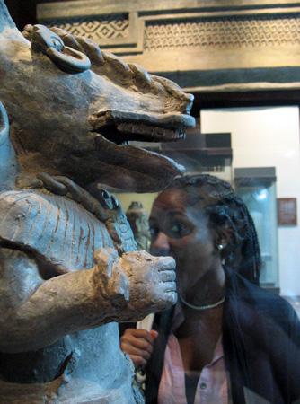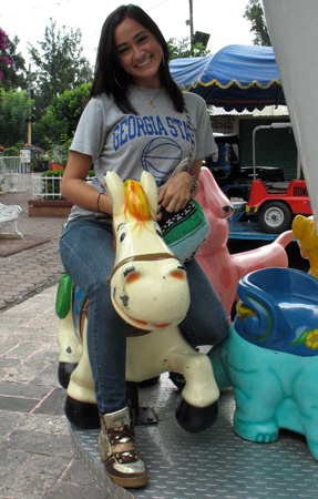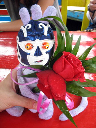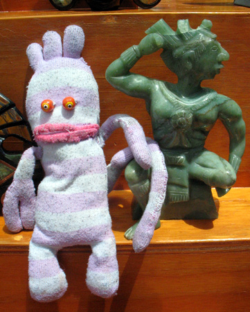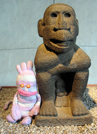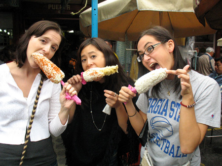 Después, Jesús nos guió por el metro (no con perfección pero fue divertido y solamente costó 3 pesos [menos de 20 centavos, 15p]). Fuimos al Mercado Cuidadela y fue perfecto para comprar regalos y trinketas (mi palabra nueva de español). Compré tantas cosas, como un pescado que abre botellas de cerveza (para Greg), unos regalos de perros (para mis padres), gatos (para mis amigas Min y Sherry) y unas estatuas de criaturas locas (probablemente para mí). Robin y yo compramos mucho pero fue muy divertido.