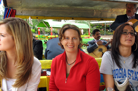 Yo no quería levantarme para ir de Xochimilco, pero fue el último día. Solamente 6 estudiantes llegaron en el lobby para visitar el lugar en los lagos (13 estudiantes habían convenido más temprano). Fue una cantidad perfecta y fue muy divertido. Solamente fuimos yo, Robin, Kachelle, Sara, Yanzit y Grace (y profesor Rudy). Rubén (nuestro guía) nos dio información en la ruta pero yo estaba muy cansada y por eso no escuché mucho.