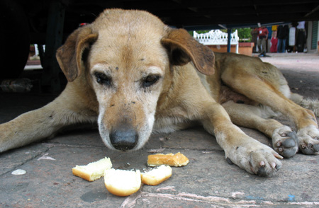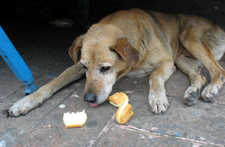 Después, compré una bolsa de pan y le alimenté el pobre perro. Al principio, fue poco tímido pero cuando él dio cuenta que yo tenía comida, fue más valiente. Fue muy gentil y tranquilo.