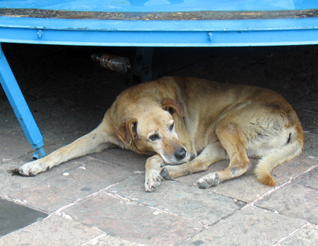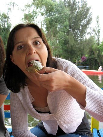 En Xochimilco había un mercado con los regalos usuales. Había un perro que tenía muchos problemas – sus piernas de trasera fueron muy malas y él tenía problemas cuando caminar. También tenía heridos y cicatrices sobre su cara. Él estaba poco tímido. Decidí que después del paseo por barca, yo regresaría y le daría pan.