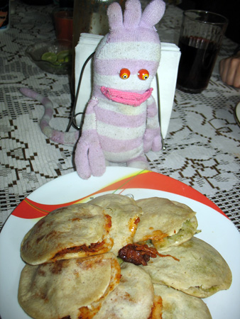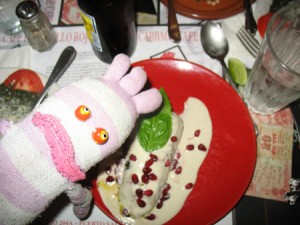 Después de una hora y media en la casa (donde escribí mis notas de la observación), Alejandra me dio comer ravioles con espinaca y una salsa de carne (muy, muy rico). Le pregunté por poco menos pero todavía me dio una porción muy grande.