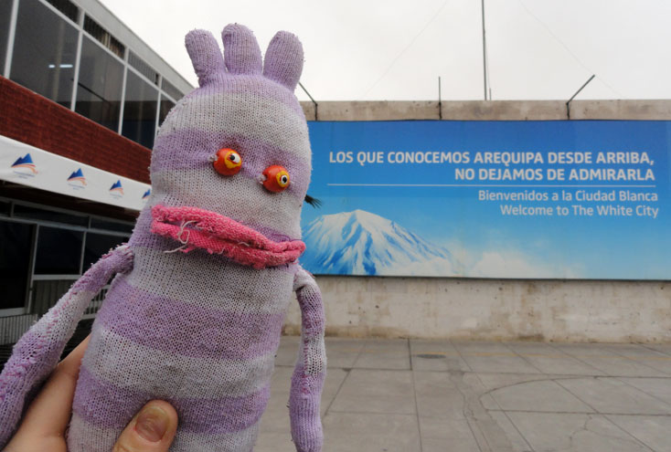 Pero, basta de los “wheees”. Llegué al mostrador de Taca, la línea aérea de mi vuelo de Lima a Arequipa, y ¿puedes adivinar qué pasó en ese momento?… El vuelo fue “cerrado” – en otras palabras, Taca ha cambiado el tiempo del vuelo sin mandarme un aviso del cambio por correo electrónico. No sería posible embarcarme este vuelo. ¡Grrr! Sabía al tiempo de la reservación que el sitio web de Taca fue mierda pero parece no es solamente el sitio web que es mierda.